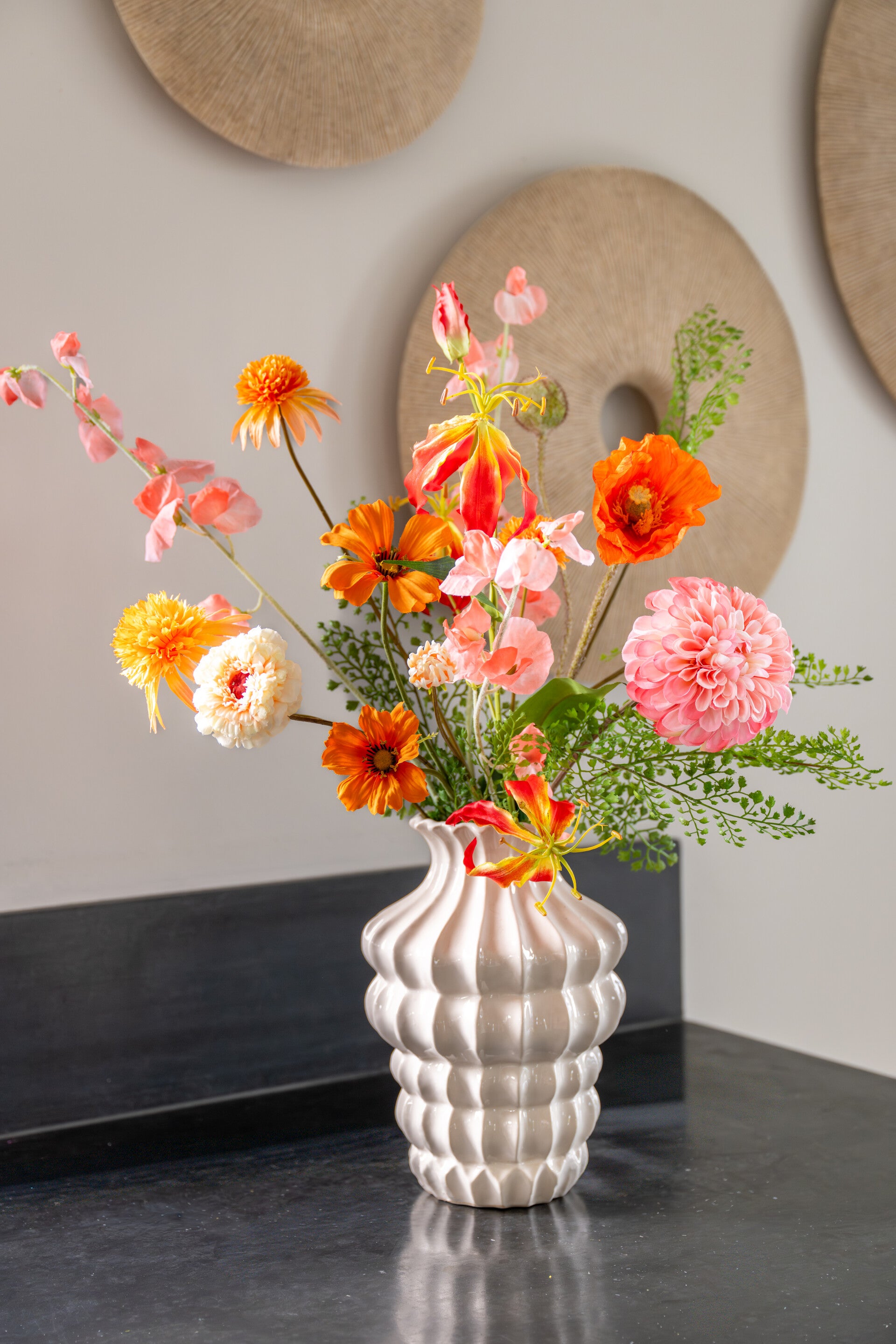 Zijden boeket middel in oranje/roze tinten